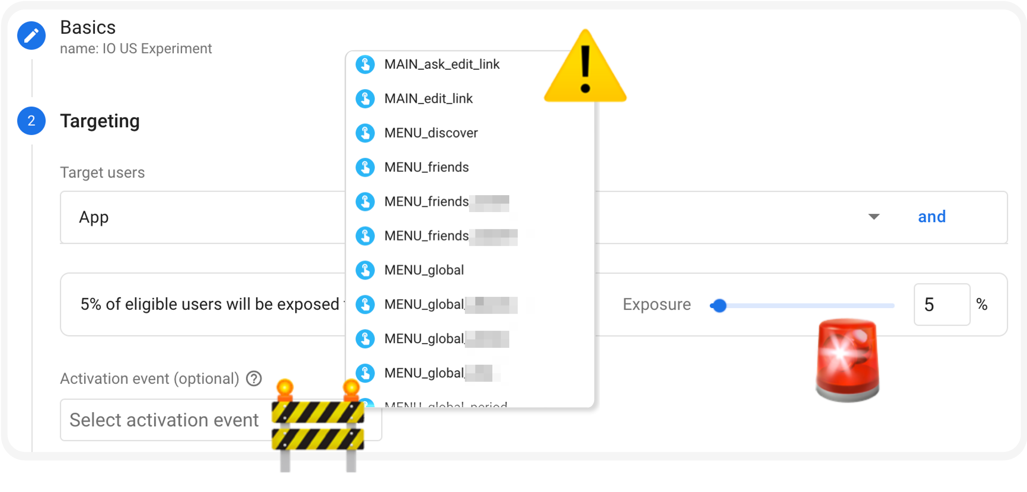 Targeting fields and Activation events can limit your experiment to a particular subset of users.