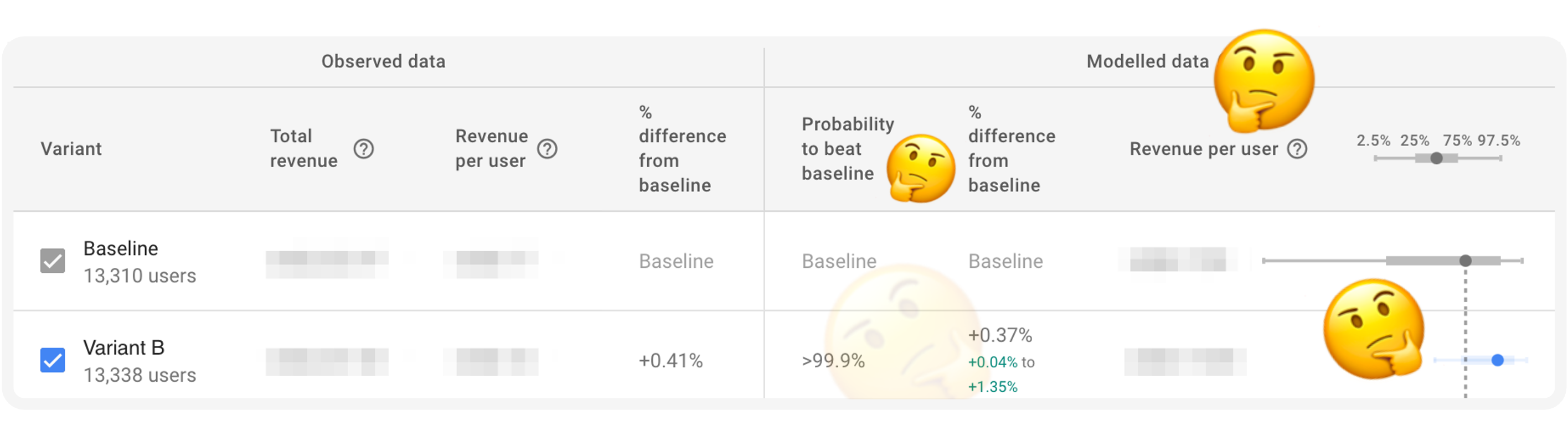 Firebase automatically analyzes the experiment and presents results in two panels – Observed and Modeled data.